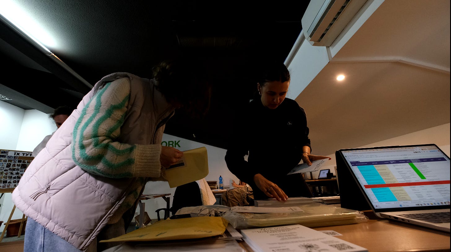 🌻Масштаби відправки: усі дні підготовки нам допомагали волонтери, які захоплювали своїм ентузіазмом. А 26 серпня ми зрозуміли, що ледь встигаємо підготувати до відправки ще 100+ пакувань.Тоді ми активізували всіх-всіх колег, наших помічників і таки встигли зробити всі необхідні ТТН та запакувати відправлення. А наступного дня ми з моєю колегою Настею Чак удвох самі несли цю важкеньку коробку до поштового відділення, щоб вона встигла приїхати до учасників, що чекали на матеріали для свого Столу пам’яті. Дорогою до пошти ми з Настею передавали коробку одна одній, щоб трохи відпочили руки. Нас переповнювали емоції від усвідомлення масштабу та важливості цієї події!