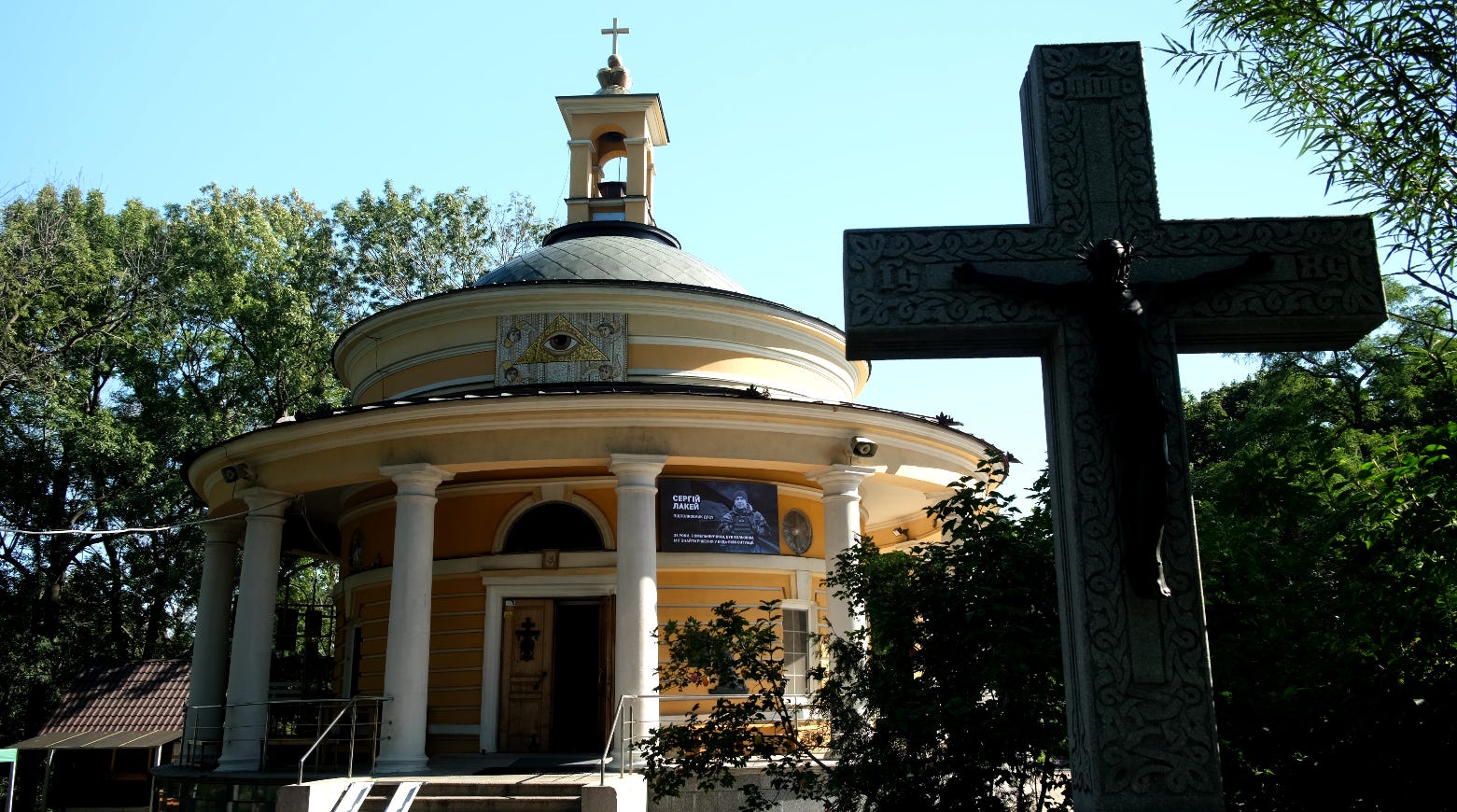 Почали демонструвати ролики пам'яті на екрані, що на території Аскольдової Могили. Для демонстрації передали 100 роликів про захисників України.