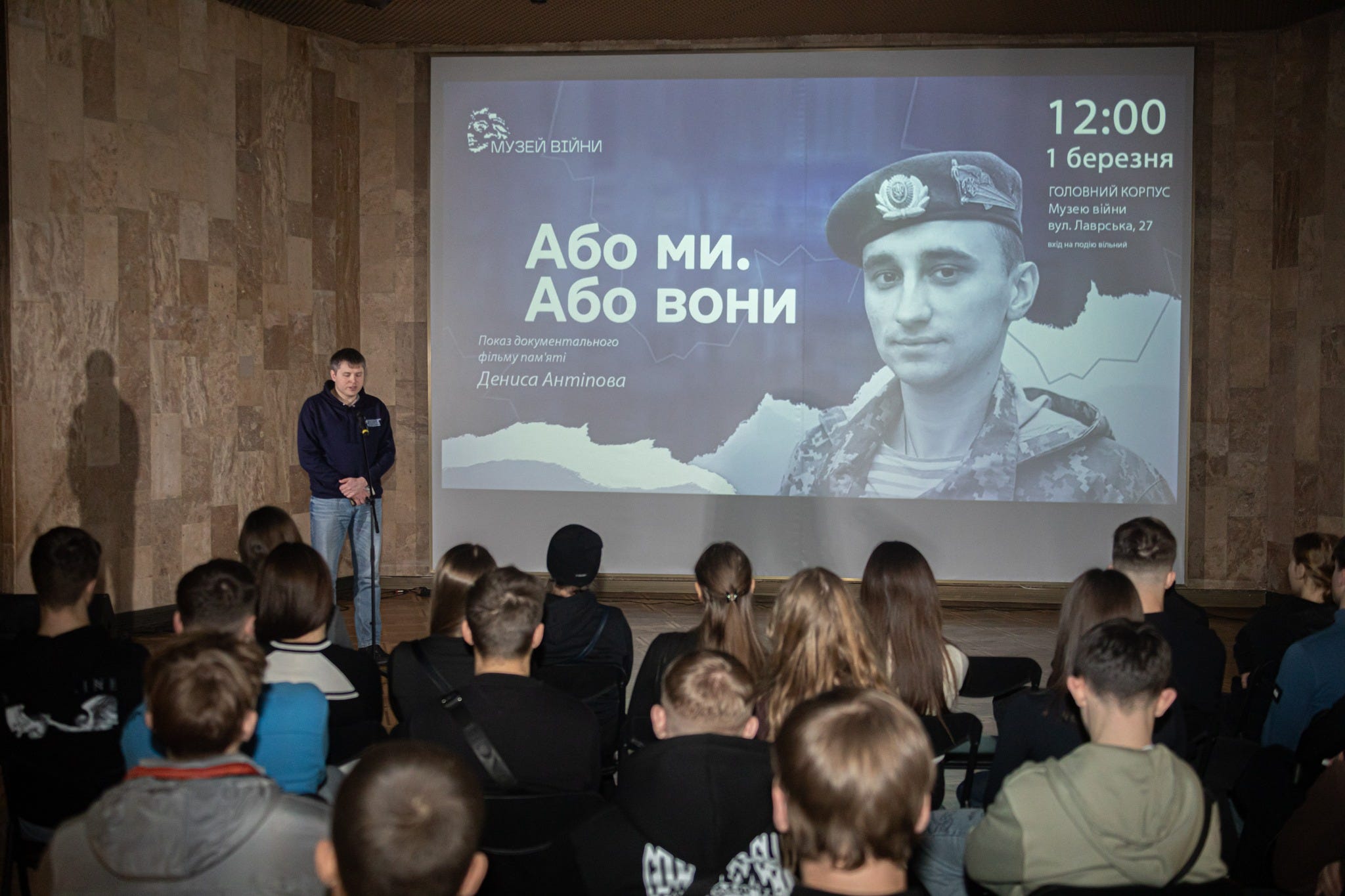 🌿У Національному музеї історії України і Другій світовій війні відбувся показ документального фільму «Або ми. Або вони», присвяченого пам’яті захисника України, мовознавця, підприємця та громадського активіста Дениса Антіпова. Захід організований Музеєм війни спільно з платформою пам'яті меморіал.